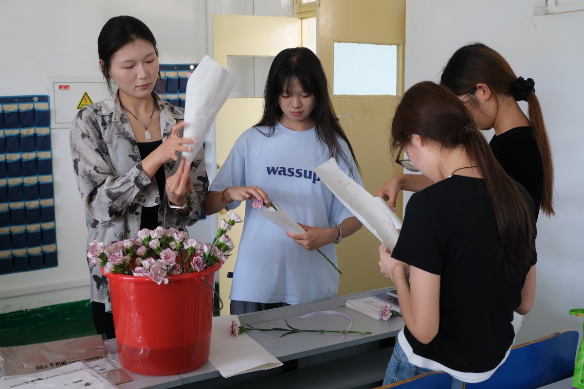 活动前,学生会提前集齐包装材料与新鲜花材,有经验的同学主动分享技巧,大家围坐梳理花材,折叠纸张、写好祝福语。随后同学们将花束逐一送到老师们手中。老师们露出惊喜笑容,叮嘱大家珍惜课堂时光,在学习中多思考探索。同学们还为老师录下节日祝福的视频,让温暖氛围遍布每个角落。