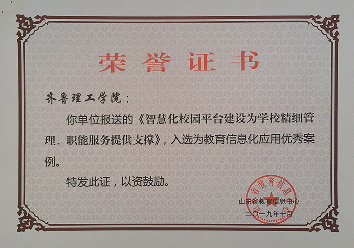 经过多年的建设和发展,学校教育数字化及数字化转型成效显著,2017年学校被山东省教育厅确定为教育信息化试点单位,2020年以优秀成绩顺利通过验收,认定为山东省教育信息化示范单位。2019年学校《智慧化校园平台建设为学校精细管理、职能服务提供支撑》被山东省教育厅评为本科院校教育信息化应用优秀案例。2021、2022连续2年学校分别被山东省教育厅和中共山东省委教育工委评为2021年度教育网络安全工作先进单位和2022年度山东省教育系统党委(党组)网络安全工作优秀单位。2022年学校依托智慧化校园自主开发的“学生疫情期间在线请销假与校门管控系统”得到山东省委教育工委、教育厅以及驻地领导高度关注,专门在学校召开了济南市全部高校参加的现场观摩会予以推广应用,同时该案例被山东省教育厅评为信息化建设应用典型案例。2023年《问鼎网页版登录入口数字赋能构建智慧课堂教学运行管理新格局》等3个案例被山东省教育厅评为2022-2023年数字化赋能教育信息化建设与应用典型案例,2023年学校被山东省教育厅确定为智慧教育示范校创建单位,开启学校教育数字化建设和数字化转型新篇章。2024年《问鼎网页版登录入口数据融合助力校园安全校门智能管控》等2个案例被山东省教育厅确定为2024年数字化赋能教育信息化建设与应用典型案例,在2024年山东省教育厅系统网络安全攻防演练活动中,我校荣获“优秀防守团队”“团队优秀奖”荣誉称号。