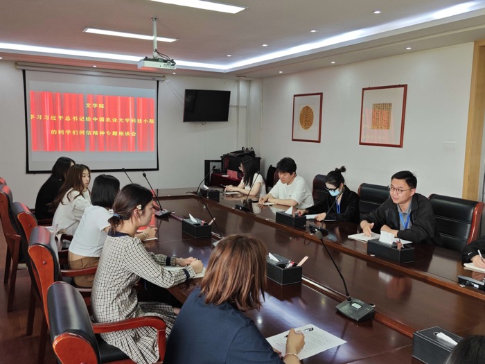 更新时间:2023-05-09 14:30 5月8日,文学院党总支在视频会议室召开“习近平总书记给中国农业大学科技学院的同学们回信”精神专题学习会。学习会由文学院党总支书记、学院副院长孔庆源主持。