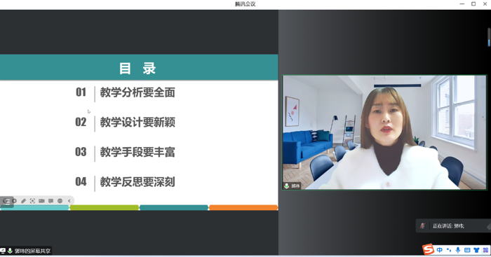 郭玮老师分享了“以赛促教,推进以学生为中心的外语教学改革”为主题直播课,郭老师聚焦青年教师比赛和教学创新大赛,结合自己丰富的教学比赛经验,围绕日常教学中如何推进以学生为中心的教学改革发表了自己的看法,并结合课堂教学设计实例进行了展示,对以赛促教、以赛促改推动课堂的教学改革创新起到了示范引领作用。