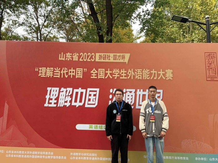 更新时间:2023-11-10 14:15 2023年度“外研社·国才杯”“理解当代中国”全国大学生外语能力大赛省赛于11月5日在山东大学圆满帷幕。文学院2021级英语专业邵承毅同学获英语口译赛项二等奖,2023级英语专升本班袁子玉同学获英语笔译赛项二等奖,2021级英语专业马骏驰同学获英语口译赛项三等奖、英语写作赛项三等奖,2021级英语专业潘芊芸获得英语阅读赛项优胜奖,2022级英语专业律皓然获英语演讲赛项优胜奖,2020级日语专业于峰获日语赛项三等奖,2020级日语专业马培欣获日语赛项优胜奖。