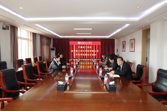 更新时间:2023-11-14 08:05 11月13日,文学院与曲阜凯大教育培训学校有限公司开展访企拓岗洽谈会。文学院院长秦国华,学生副院长孔庆源,曲阜凯大教育培训学校有限公司招聘部主管肖娜、聂倩参加本次洽谈。洽谈会由文学院就业副院长王华兴主持。