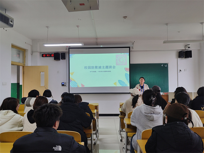 主题教育中,同学们首先观看学习了“山东校园防欺凌警示片”。该警示片以真实案例为基础,向同学们详细讲解了校园欺凌的各种手段和严重后果。随后,各班级辅导员向同学们普及了校园欺凌的常见形式以及应对校园欺凌的方法措施,引导学生了解校园欺凌的危害,增强防范意识。