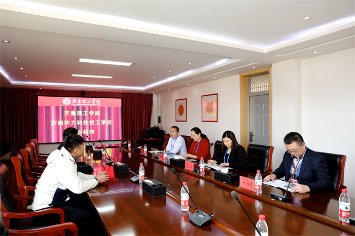 会上,秦国华院长详细介绍了学校的基本情况和发展理念,以及文学院人才培养、学生就业发展等情况。济南华力科技技工学校校长张洪宇介绍了企业的发展历程、人才需求情况等。随后,与会双方就开展实习实训合作,进一步推动毕业生就业等相关工作进行了深入探讨,并进行了实践教学基地挂牌仪式。