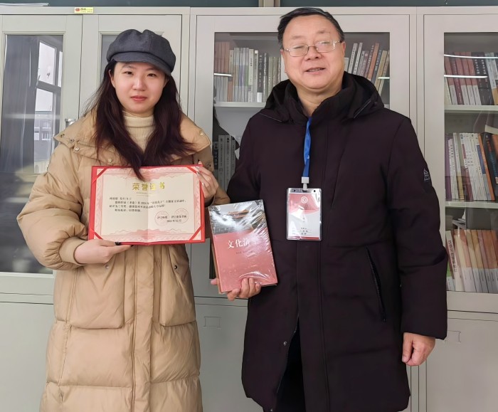 更新时间:2024-12-20 14:46 12月19日,《济宁晚报》“诗说孔子”全国征文大赛颁奖仪式在济宁亚龙书城隆重举行,文学院2023级汉语言文学专业周奕彤同学的诗歌《圣途》获三等奖。《济宁晚报》特邀顾问杨景生教授专程到曲阜为周奕彤同学颁发获奖证书和奖品。