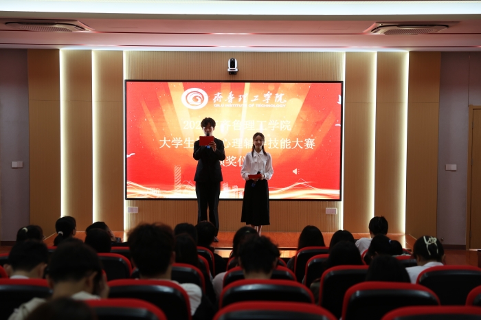 大赛设心理健康知识测试、朋辈心理辅导模拟两个环节。在心理健康知识测试环节,参赛选手沉着冷静、认真细致。现场模拟环节中,参赛选手随机抽取情景案例,进行一对一的心理辅导谈话,此环节全面考察选手的信息收集、风险评估以及临场应对能力。最终,文学2024级秘书学钟毓秀、李梦石同学本次大赛一等奖,2024级秘书学郑芯茹、侯建欣同学获二等奖。