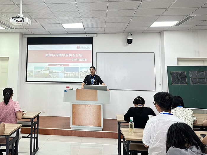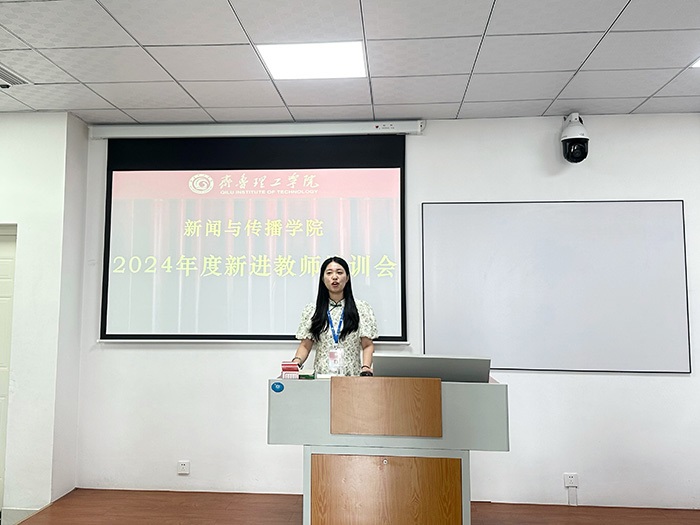 杨士霞院长围绕新进教师科研工作方向进行主题培训,从融合传播、新媒体技术与应用、传播心理三个学科方向学展开对新进教师的科研任务指导。王斌院长从实践教学出发进行主题讲座,王院长强调,“要从培养符合行业需求的岗位出发,开展教学工作,要教学实践要融合比赛,将教学成果转化为学生作品。”