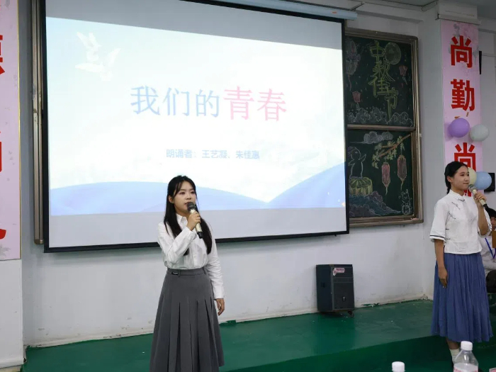 晚会进行时,新生们成为舞台的焦点,尽情展示着青春的风采,同时大二大三的师哥师姐们也登台表演,为新生们送上中秋祝福。晚会节目丰富多彩,大一新生们带来了精心准备的歌唱表演,他们的歌声悠扬动听,赢得了在场师生的阵阵掌声。学生自己排演的小品和脱口秀节目也深受大家喜爱,幽默诙谐的表演让现场笑声不断,气氛热烈。晚会还设置了猜谜环节,既考验了新生的知识储备,又增加了晚会的趣味性,学生们抢答声此起彼伏,将晚会推向了高潮。