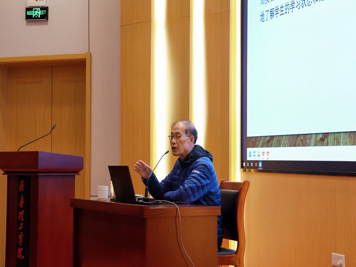 刘教授强调智慧教育要重塑师生关系。他倡导老师做花朵,鼓励学生做蜜蜂,并以自身教学心得体会倡导老师“六化”,分别为备课学术化、讲课专题化、教学互动化、作业论文化、实习基地化和能力形成平台化,以上内容的分享为我院师生关系的良好塑造打开了新思路。