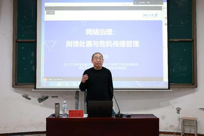 张文祥教授深入探讨了新闻传播领域网络治理的最新动态。他指出,随着传统媒体的逐渐淡出,新媒体形式不断涌现,媒介形式正经历着深刻的演进,人类社会已经迈入智能传播的新时代。生成式AI技术的快速发展虽然带来了信息传播的高效与便捷,但同时也伴随着虚假信息的滋生与蔓延,对舆论环境产生了不可忽视的影响。与此同时,张文祥教授强调,虚假信息的频繁出现不仅误导了公众的判断,还对社会稳定造成了潜在威胁。因此,他详细讲述了如何正确认识和应对舆论舆情,以及危机传播的有效处置方式,通过生动的案例和深入浅出的讲解,揭示了舆论舆情的本质特征和演变规律,提出了针对性的危机应对策略,增强了师生们在复杂信息传播环境中的辨识能力和应对能力。