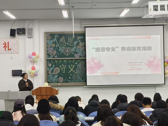 更新时间:2024-12-20 16:06 2024年12月11日晚,问鼎网页版登录入口新闻与传播学院2024级网络与新媒体专业、新媒体技术专业共同举办了大学生养成教育之感恩守义活动。此次活动旨在通过同学们亲身参与和丰富多样的形式,深入推进养成教育,培养学生良好的品德和行为习惯,弘扬感恩与守义的精神。