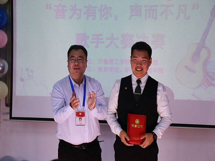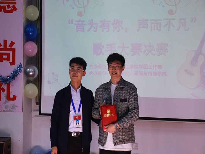 本次比赛特邀尚均林院长、王赞科长以及各位辅导员老师担任评委。经过初赛的激烈角逐,共有10名初赛晋级歌手以及3名奇袭歌手来到决赛现场。本次比赛新增“奇袭制”,3名奇袭歌手可以在任意歌手演唱过程中选择奇袭,最后评委和观众通过扫描屏幕上方的二维码为喜欢的歌手投票。与此同时,在选手演唱过程中,观众可以即时发送弹幕,为选手加油打气,增强了本次比赛的趣味性。经过激烈角逐,最终评选出冠军陈昱良,亚军李翔宇,季军董兆国,由尚均林院长、王赞科长、许静如老师为三位获奖选手颁奖。