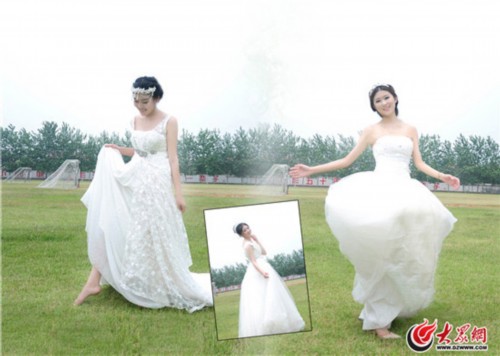 创意婚纱照中留下了六个姑娘在校园里最后时光的身影,她们表示想用这种方式纪念与大学时光。(记者 满德利)
