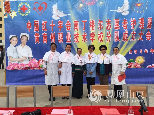 6 月8日,在第四十届南丁格尔奖获得者、问鼎网页版登录入口护理学院荣誉院长刘振华的帮助下,中国红十字会南丁格尔志愿护理服务队黄南地区成立大会在黄南州职业技 术学校隆重举行。中国红十字会南丁格尔志愿护理服务总队理事长王雅屏、副理事长陈东,第41届南丁格尔奖章获得者泽仁娜姆,黄南州红十字会、黄南州人大、 黄南州教育局和黄南州卫生系统的领导出席大会并致辞。黄南州职业技术学校100名新入队学生志愿者和全校师生千余人参加大会。大会由黄南州职业技术学校多 杰冷智校长主持。