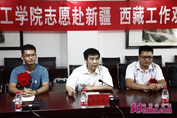 最后,党委副书记苏占兵作重要讲话,代表学校向赴新疆、西藏工作的学生表示衷心的祝贺,并对他们提出了几点希望:一是要适应转变,调整心态,尽快融入到新的生活和工作环境中;二是要吃苦耐劳,树立努力向上、完善自我、奋发图强的革新精神,树立实事求是、知行合一、艰苦奋斗的务实精神,努力培养自己直面挑战的能力、适应社会的能力、参与竞争的能力和创新创业的能力;三是要虚心学习,向人民群众学习,向基层干部学习,向同行学习,为自己的成长发展提供不竭动力;四是要甘于奉献,继承艰苦奋斗的优良传统,弘扬谦虚谨慎、不骄不躁的作风,立足本职,埋头苦干,在西部、在基层,到困难多、挑战性强的地方,到祖国、人民最需要的地方,经受锻炼,在艰苦中创业,在奉献中成长,让青春在奉献中闪光,让生命绽放出最明亮最炽烈的火花。