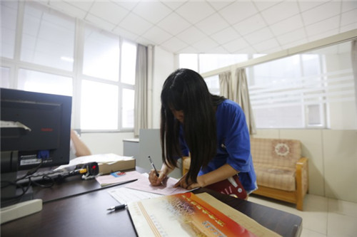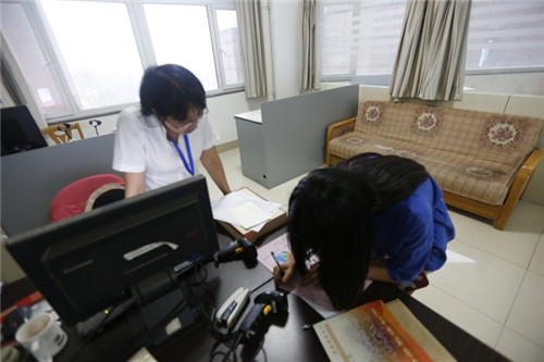 出于安全考虑文梅的父母只让她带了一千元的现金,暂时还没有办法交纳学费,学校得知这件事后通过绿色通道,当即办理了各项入学手续,先安排她入学入住。谈起对学校的印象时文梅朴实的说道,学校看上去比网站上的还要大,也很漂亮,而且老师们很热情。自己非常的开心,完全把这一路的疲惫抛到了脑后。