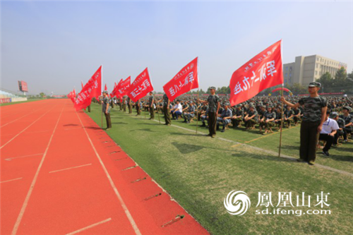 上午9点半,动员大会在雄壮的国歌声中拉开序幕。王长根将军郑重地向军训团授旗。