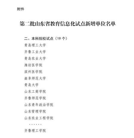 山东省为加快推进全省教育信息化工作,山东省教育厅于2014年6月启动了山东省教育信息化试点工作,主要面向全省学校和各地教育行政部门,目的是以试点项目实施为抓手,在全省形成一批特色鲜明、成效显著的教育信息化试点地区和学校,充分发挥试点辐射和示范带动作用,推进信息技术与教育教学的深度融合与应用,全面提升我省教育信息化发展水平。