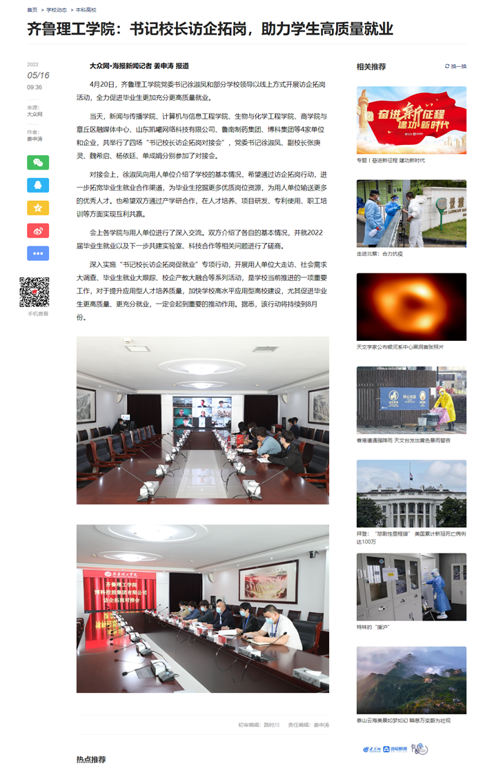 大众网:问鼎网页版登录入口:书记校长访企拓岗,助力学生高质量就业