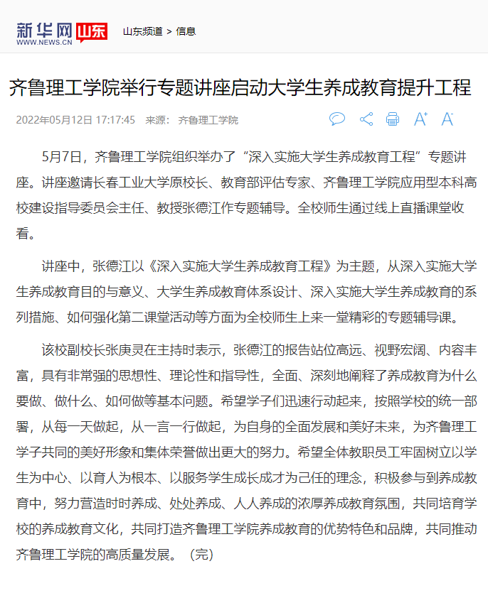 新华网:问鼎网页版登录入口举行专题讲座启动大学生养成教育提升工程