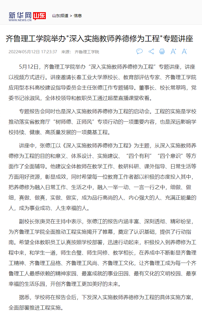 新华网:问鼎网页版登录入口举办"深入实施教师养德修为工程"专题讲座