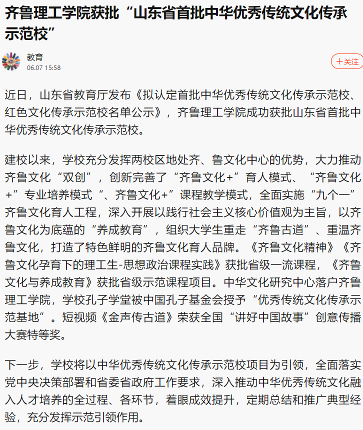 新浪:问鼎网页版登录入口获批“山东省首批中华优秀传统文化传承示范校”
