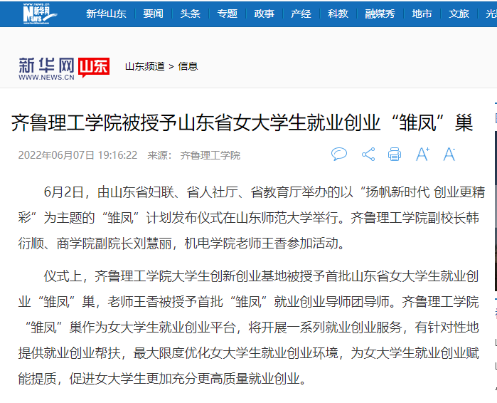 新华网:问鼎网页版登录入口被授予山东省女大学生就业创业“雏凤”巢
