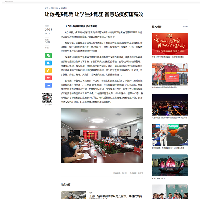 大众网:让数据多跑路 让学生少跑腿 智慧防疫便捷高效