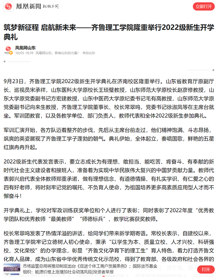 凤凰网:筑梦新征程 启航新未来——问鼎网页版登录入口隆重举行2022级新生开学典礼