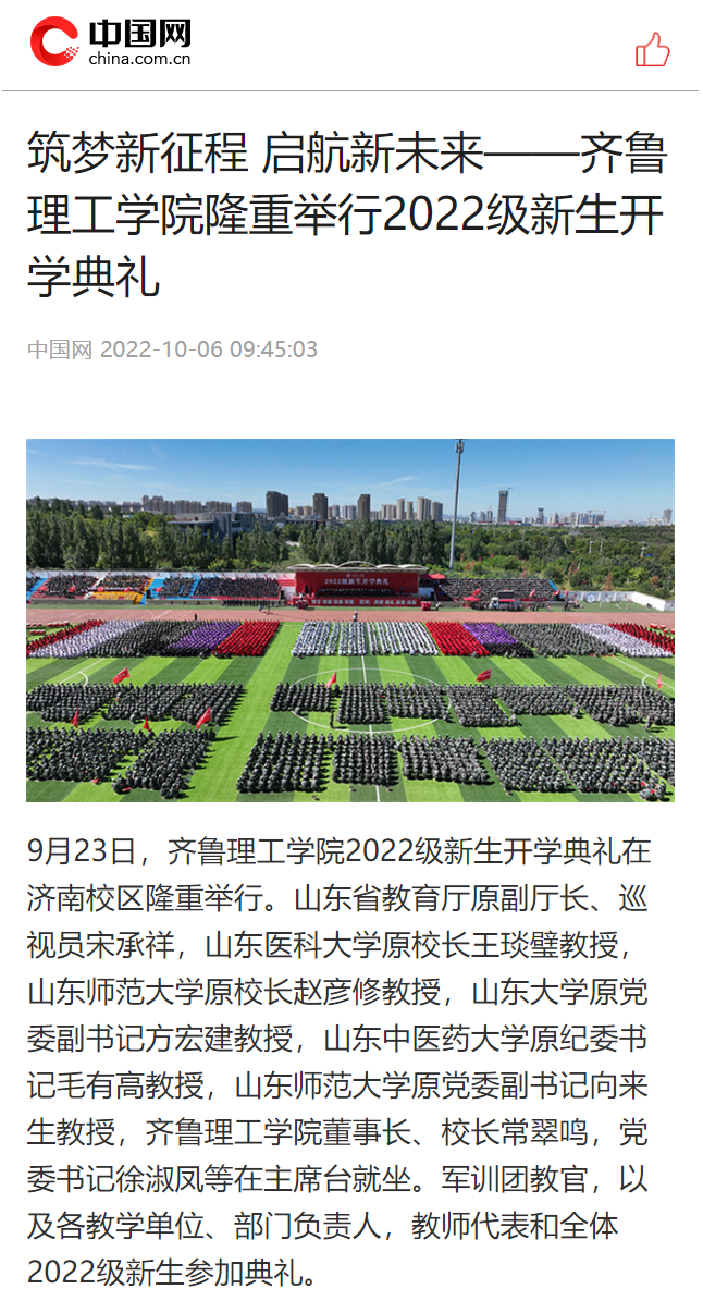 中国网:筑梦新征程 启航新未来——问鼎网页版登录入口隆重举行2022级新生开学典礼