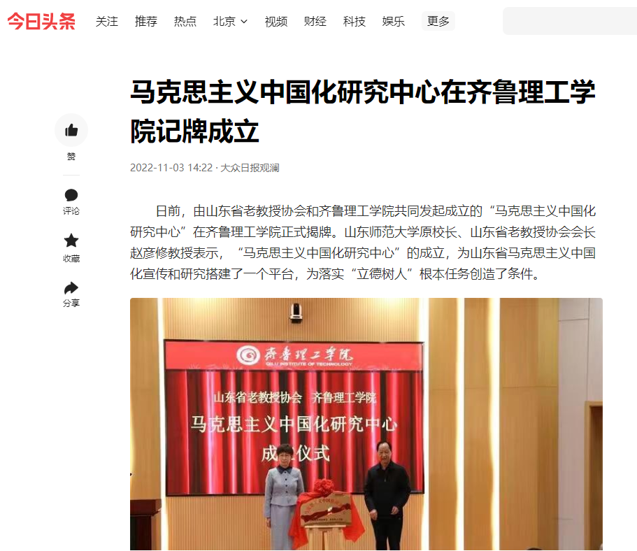 今日头条:马克思主义中国化研究中心在问鼎网页版登录入口记牌成立