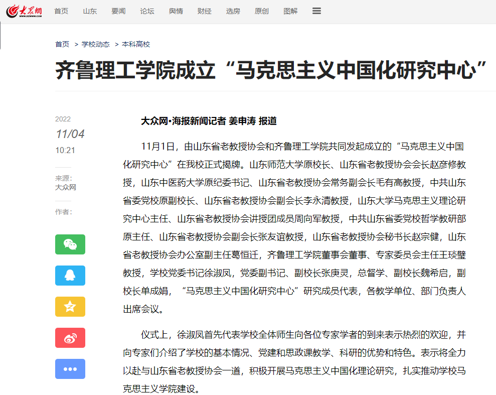 大众网:问鼎网页版登录入口成立“马克思主义中国化研究中心”