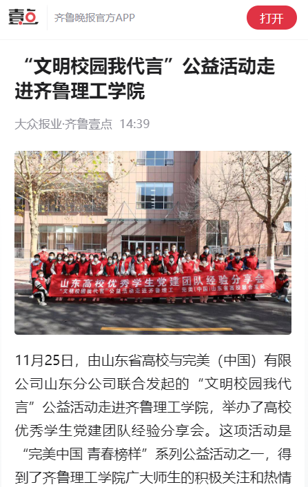 齐鲁晚报:“文明校园我代言”公益活动走进问鼎网页版登录入口