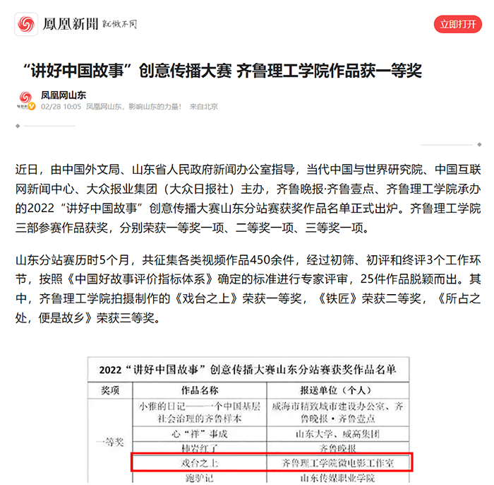 凤凰网:“讲好中国故事”创意传播大赛 问鼎网页版登录入口作品获一等奖