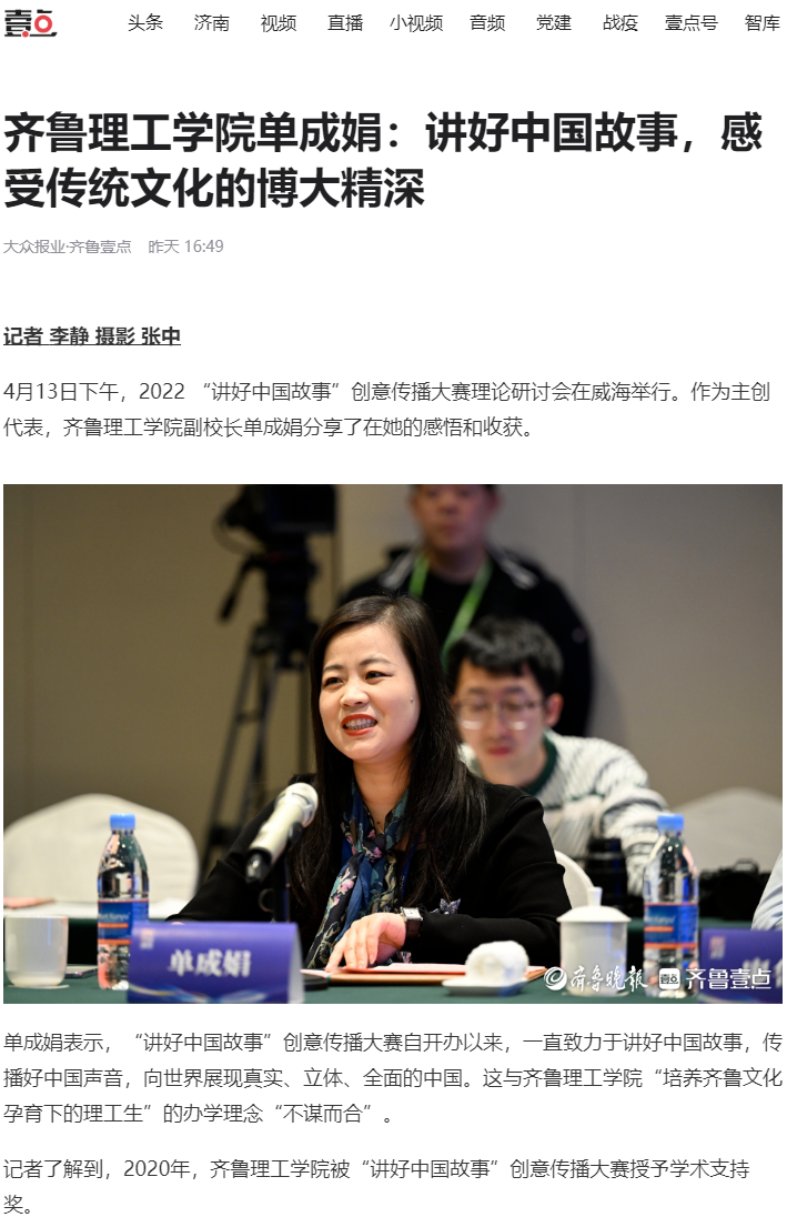 齐鲁壹点:问鼎网页版登录入口单成娟:讲好中国故事,感受传统文化的博大精深
