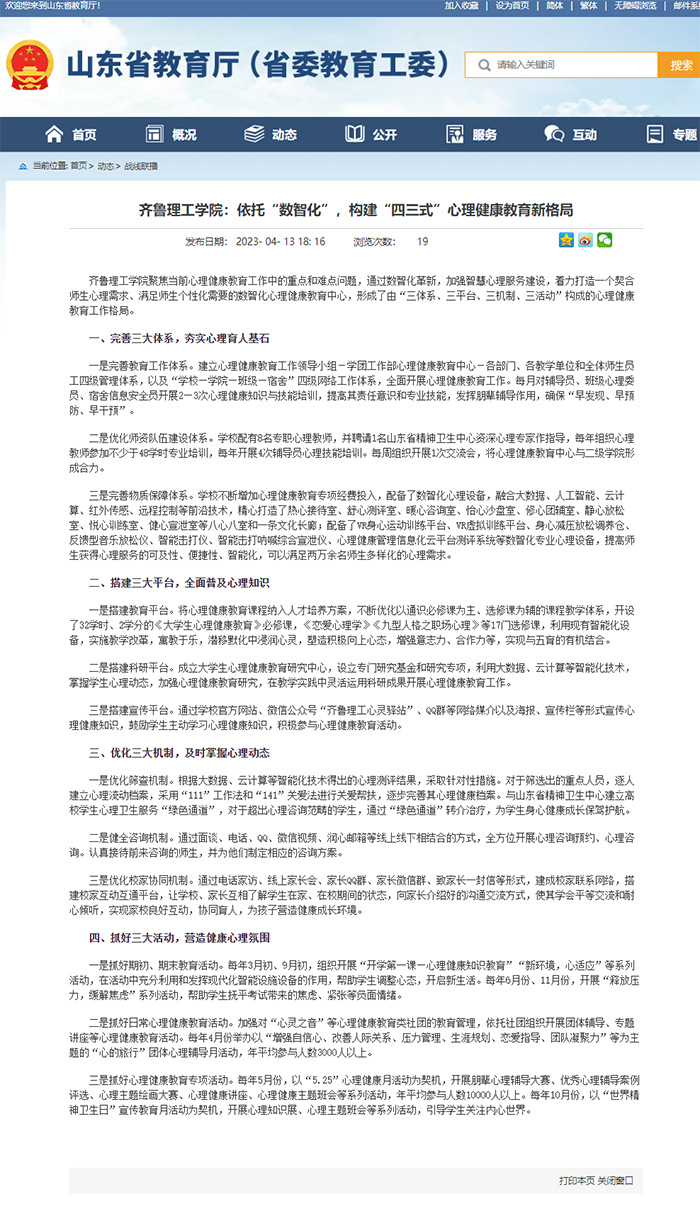 山东省教育厅:问鼎网页版登录入口:依托“数智化”,构建“四三式”心理健康教育新格局