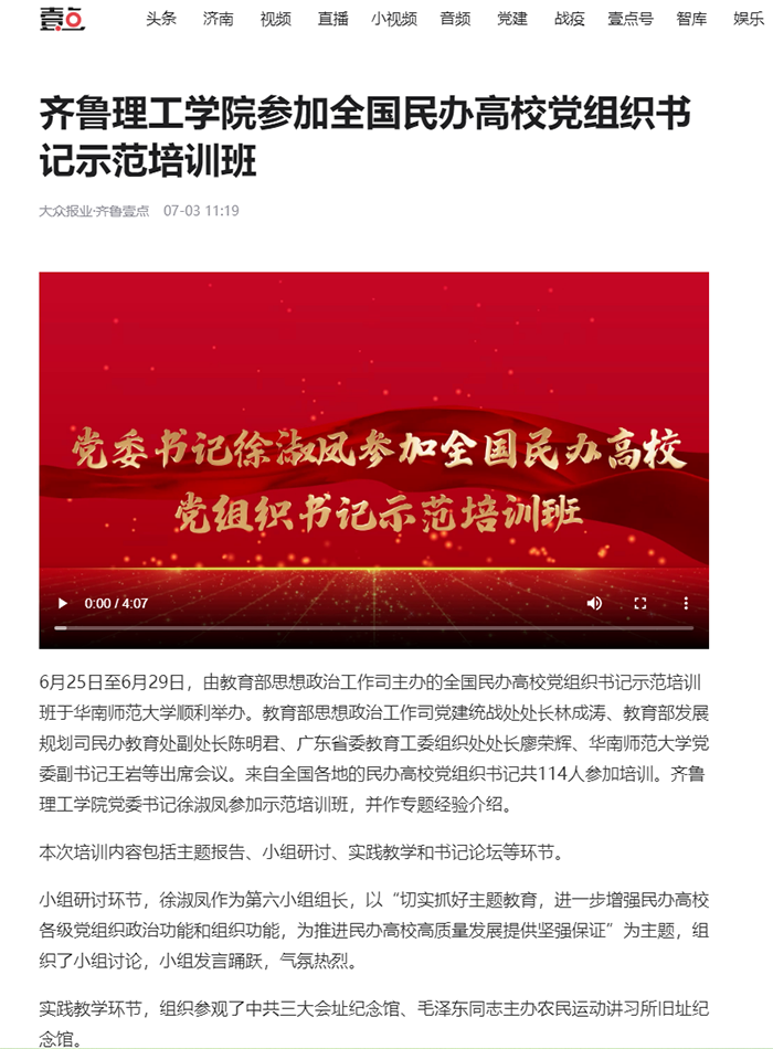 齐鲁壹点:问鼎网页版登录入口参加全国民办高校党组织书记示范培训班