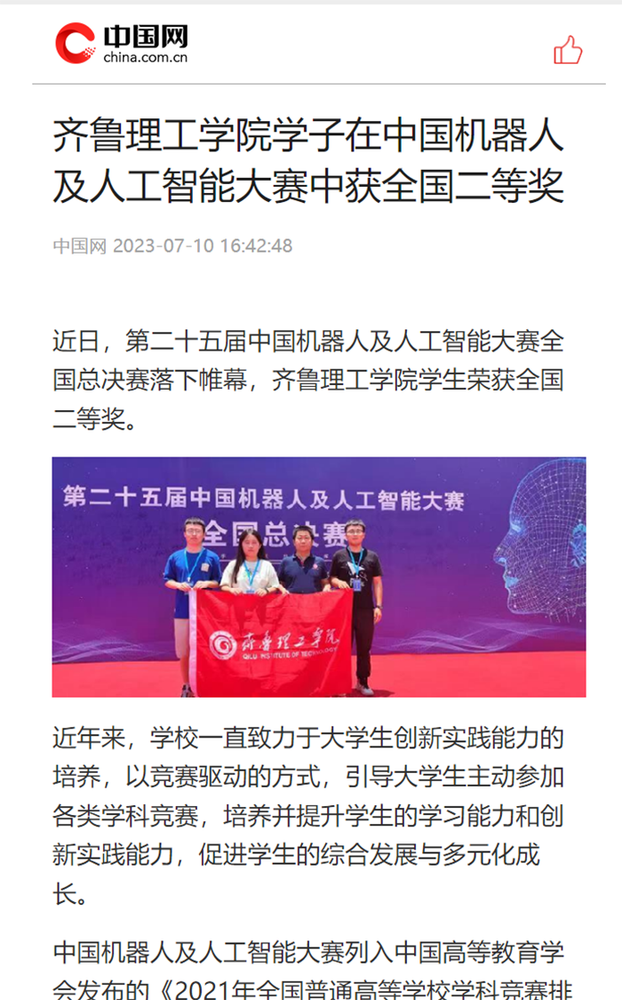 中国网:问鼎网页版登录入口学子在中国机器人及人工智能大赛中获全国二等奖