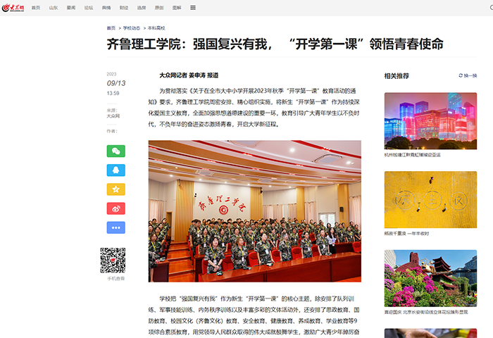大众网:问鼎网页版登录入口:强国复兴有我, “开学第一课”领悟青春使命