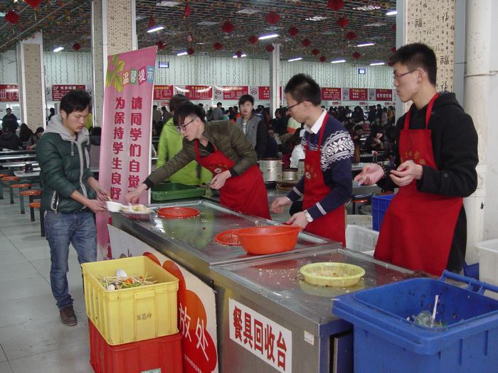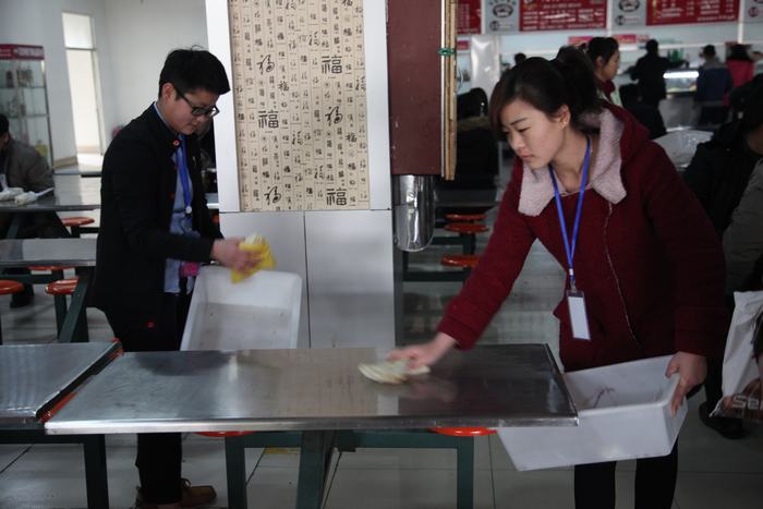 3月5日中午,曲阜师范大学杏坛学院济南校区文学院学生会和杏园之声广播站的同学们联合发起“爱在食堂,学习雷锋”的主题活动,在我院食堂打扫卫生,帮助食堂工作人员维持秩序,收拾餐盘以及分类投放垃圾等,用实际行动践行雷锋精神。