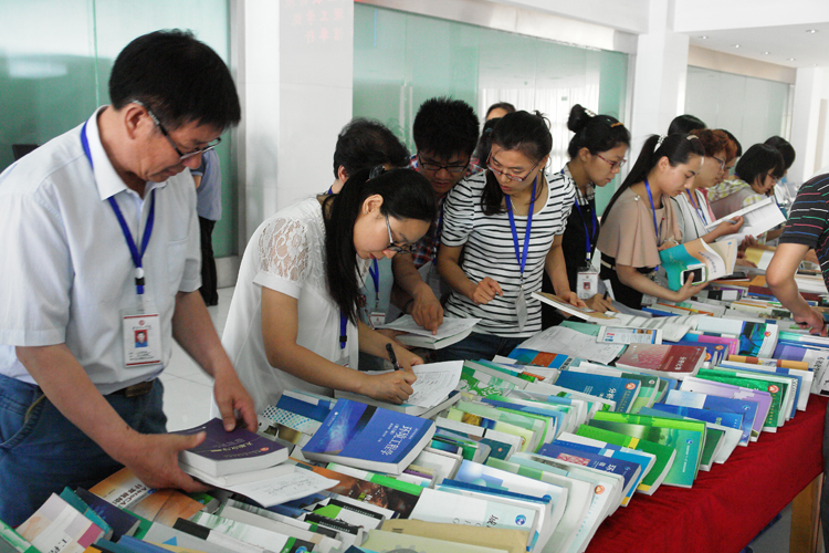 上午9点,开展仪式在图书馆大厅举行,学院相关领导和部分教师出席。教务处吴处长强调了教材在日常教学中的重要性,并表示此次精品教材展对学院教学工作有巨大辅助作用,为教师选订课程教材提供了便利,希望各位老师认真参展,选出最具代表性、实用性的精品教材。