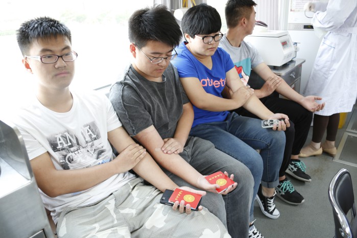 上午9点,当济南市采血中心的爱心献血车开进校园时。现场的志愿工作者已将横幅、展板、桌椅等所需物品准备就绪,不一会儿,采血车前就挤满了前来献血的师生员工。13级电子信息工程1班的方涛同学说:“自己一直想参加献血活动,但总因为有所恐惧,而一次次错过。后来,受到主动献血同学的感染和影响,我也勇敢地挽起了衣袖。”团委副书记