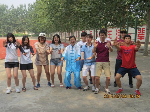 为期一个月的交流学习中,问鼎网页版登录入口为韩国平泽大学修学团安排了太极拳课程。7月的早晨,阳光明媚,曲阜校区太极拳专业教师王玉龙老师在学院操场带领修学团成员一起学习太极拳。一招一式,修学团成员学的有模有样。