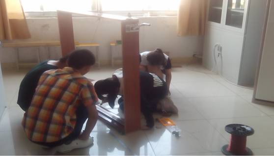进入七月,骄阳似火。各组选手开始了创新展品的制作阶段。由于是初次参加省级规模的物理创新大赛,选手们有的是似火热情,缺的是经验和积累。材料没有购置齐全,大家就一起去市场,集中采购加单独选购;加工和制造过程,出力加出汗,把制作原料通过自己的双手变为符合要求的装置和测试仪器;实验和测试过程中,一次没有实现实验和测试目的,就分析产生的原因,继续下一次实验和测试;测试数据不理想,就进行严格的计算和处理,直到满意为止;展品制造太粗糙,就改善设计方案,制作出能够体现创新选手制作水平,具有一定技术含量的大赛展品。