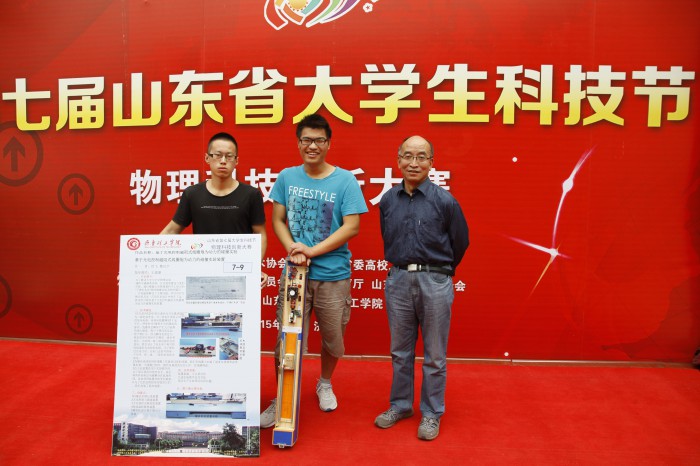在山东省第七届大学生科技节物理科技创新大赛中,由我校机电工程学院机械设计制造及其自动化专业大二学生徐飞、魏汉宇设计制作、王蕴珊教授指导的《以光电控制多级线圈炮为动力的碰撞实验装置》获得了大赛的一等奖。