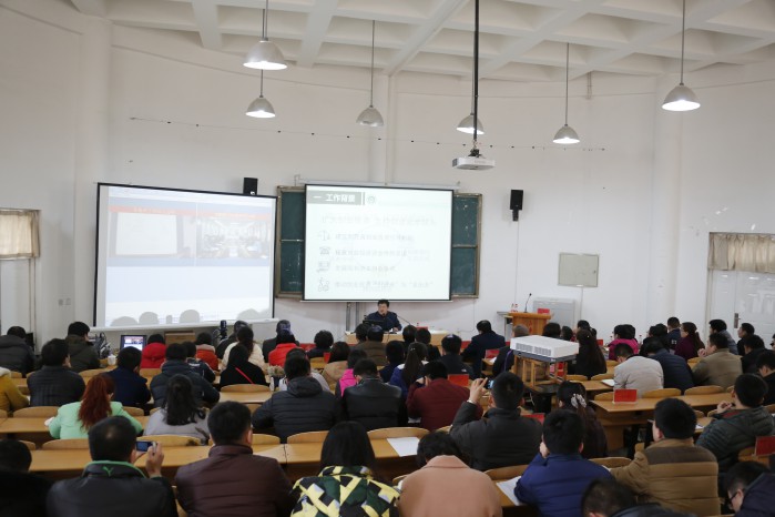 2月25日上午,学校邀请山东农业大学学生工作处韩同吉副处长做了题为《构建双创四驱模式 提升双创工作水平》的专题讲座,讲座在学校图书馆报告厅举办。副院长张庚灵、陈月吉出席,教务处、学生处、就业与创新创业指导中心相关人员,各二级学院院长、教学科长、学生管理科长及辅导员听取讲座,曲阜校区通过视频在第二会场听取讲座。讲座由副院长张庚灵主持。