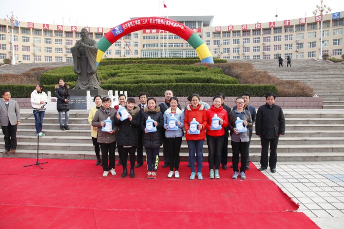 为体现学校对女教职工的关怀,使大家过一个快乐、充实的节日,3月8日下午,学校在二级平台举办庆祝“三八妇女节”女教职工跳绳比赛。省高校工委党建工作联络员、督导专员英继明,党委副书记王凤山、苏占兵,副院长陈月吉、刘楠、魏希启等学院领导到场观看比赛。