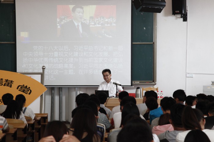 报告中,单教授从大学生为什么要学习传统文化入手,介绍了当前“国学热”的种种乱象,深刻地剖析了传统文化的三个层次,以及中华优秀传统文化的主要内容。单教授的报告引经据典、语言生动幽默,从古至今、纵横中外的讲座内容引导听众走入历史、又放眼世界观察文化和文明,不仅使大家了解了我国传统文化的发展脉络,感受到中国文化的博大和国家的强大,更增强了大家对民族文化的自信,使大家充分感受到传统文化的意蕴和魅力,引发了强烈共鸣。