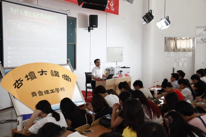 6月27日,曲阜师范大学国学院执行院长、文学院院长、博士生导师单承彬教授做客我校“杏坛大讲堂”,为我校学生作了“大学生如何学习传统文化”的专题报告。报告会由党委副书记苏占兵主持。