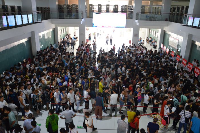 为方便新生入学报到,学校在火车站、汽车站设立了新生报到接站处;安置指引路标,发放报到流程说明等,让新生与家长对校园环境路线和报到流程心中有数;开设绿色通道,为贫困新生提供全方位、持续性的资助政策,让他们办理入学手续更为方便快捷;搭建帐篷、设立休息区,为新生和家长提供饮水等各项服务;设立临时医疗服务处,为新生及家长、迎新工作人员,提供医疗保障,随时处理突发事故和应急事件。
